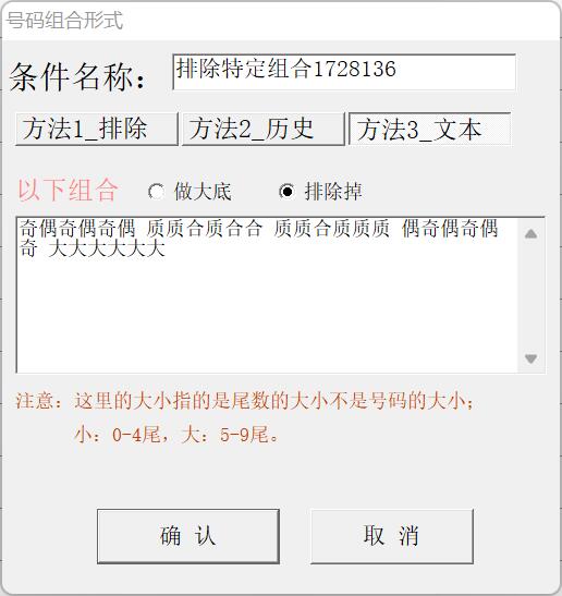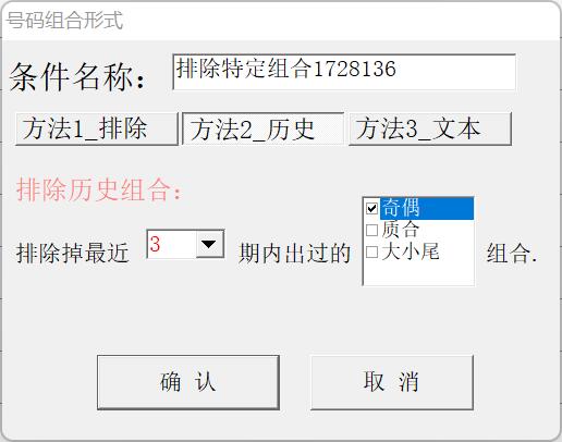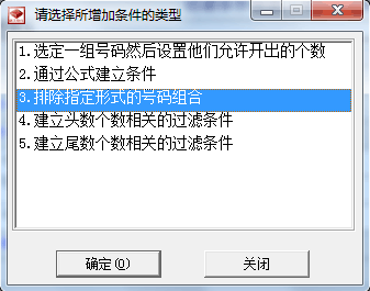 选择“3.排除指定形式的号码组合”然后点击“确定”按钮,弹出具体设置窗口